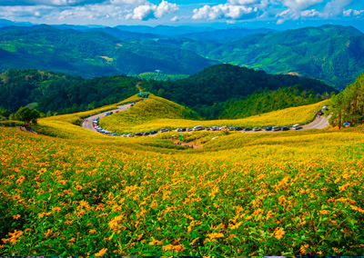 The Mae Hong Song Loop is a key leg in the journey with thousands of undulating twists and inclines to offer challenging terrain and infinite oceans of jungle countryside.